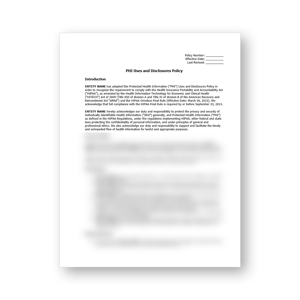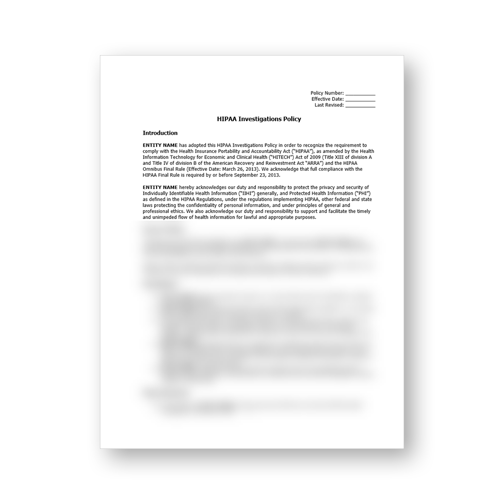 Get HIPAA compliant with our all-inclusive HIPAA Policy Template Package. This package includes 57 templates written to meet both HIPAA and HITECH regulations for safeguarding personal health information (PHI). The documents are professionally drafted in Microsoft Word format, so you can easily customize them to your organizational needs.