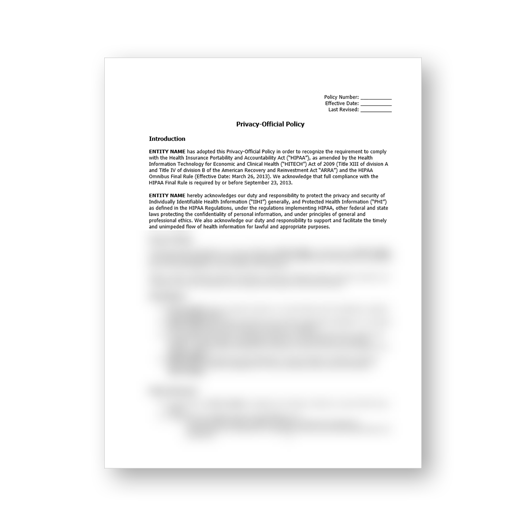 Each of our HIPAA templates are in Microsoft Word (.docx) format for easy editing. Each template is guaranteed to be fully HIPAA & HITECH compliant when properly implemented.