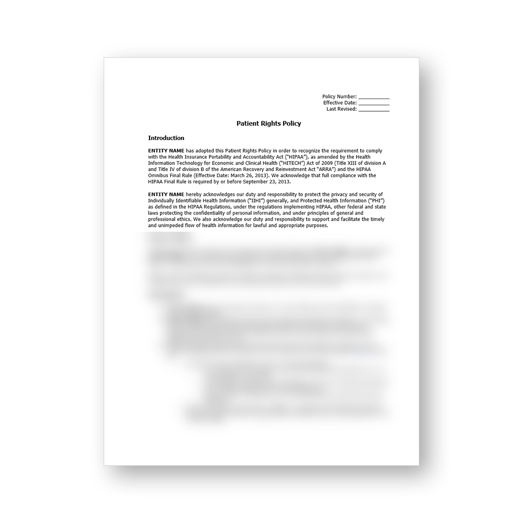 You will be up and running quickly with this comprehensive package that adheres to guidelines set by the Department of Health & Human Services (HHS). You can save time on researching federal laws and regulations because everything is included in one convenient package.