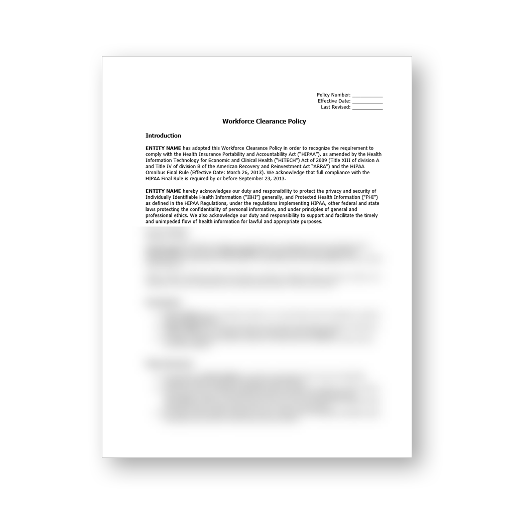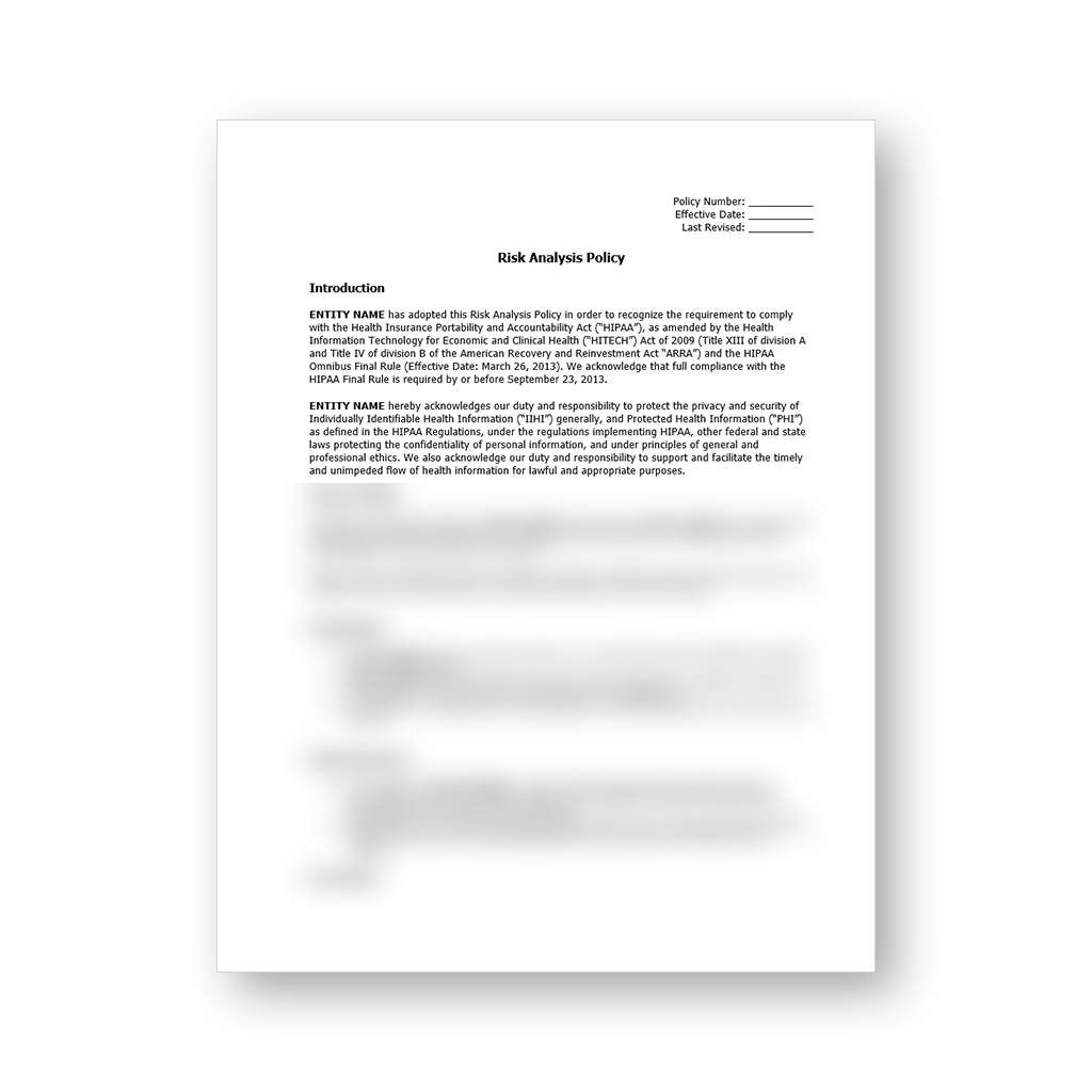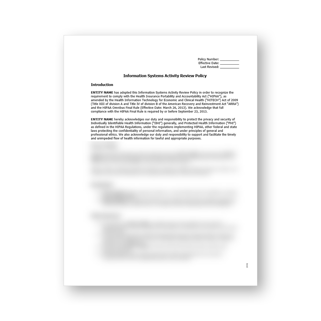 Our package serves any size organization ranging from startup clinics up to large hospitals. Every document is mapped to core compliance requirements such as administrative safeguards, physical safeguards, technical safeguards and more. To ensure that all the documents are compliant, they are regularly reviewed by experienced experts in the industry.